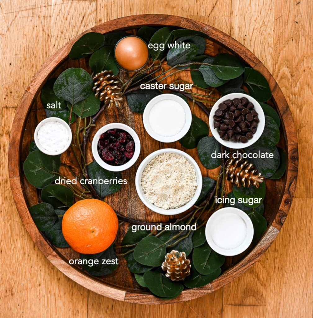 These soft, chewy amaretti are my go-to edible gift at Christmas — beautifully festive, naturally gluten-free, and incredibly simple to make. With chocolate, orange zest, and cranberries, they offer all the flavours of the season without the heaviness of traditional Christmas baking. If you’re looking for something thoughtful and homemade (especially for those who aren’t fans of Christmas mince pies), these will be a hit.