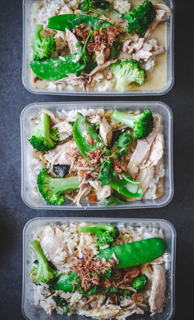 If I’m feeling organised, this is my preferred method: I gently braise a whole chicken in the oven with fragrant aromatics. I love this approach — the oven gives me better temperature control, the clean-up is easier, and the texture of a gently braised whole chicken is incomparable. I then use that rich, aromatic stock for the curry and a simple chicken noodle soup, or split the chicken and stock between the two. More bang for your buck, and for me, absolutely worth the extra effort.