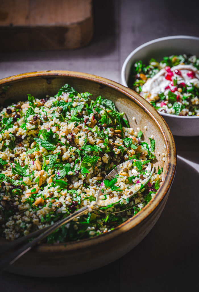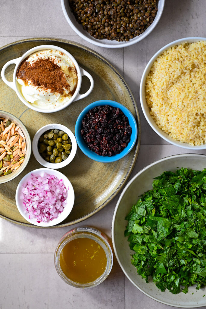 What I love most about this salad is how complete it feels. Grains and lentils for substance, plenty of fresh herbs and greens, sweet currants, salty capers, and a creamy cumin yoghurt that brings everything together. It’s nourishing without feeling heavy, and vibrant without being fussy.