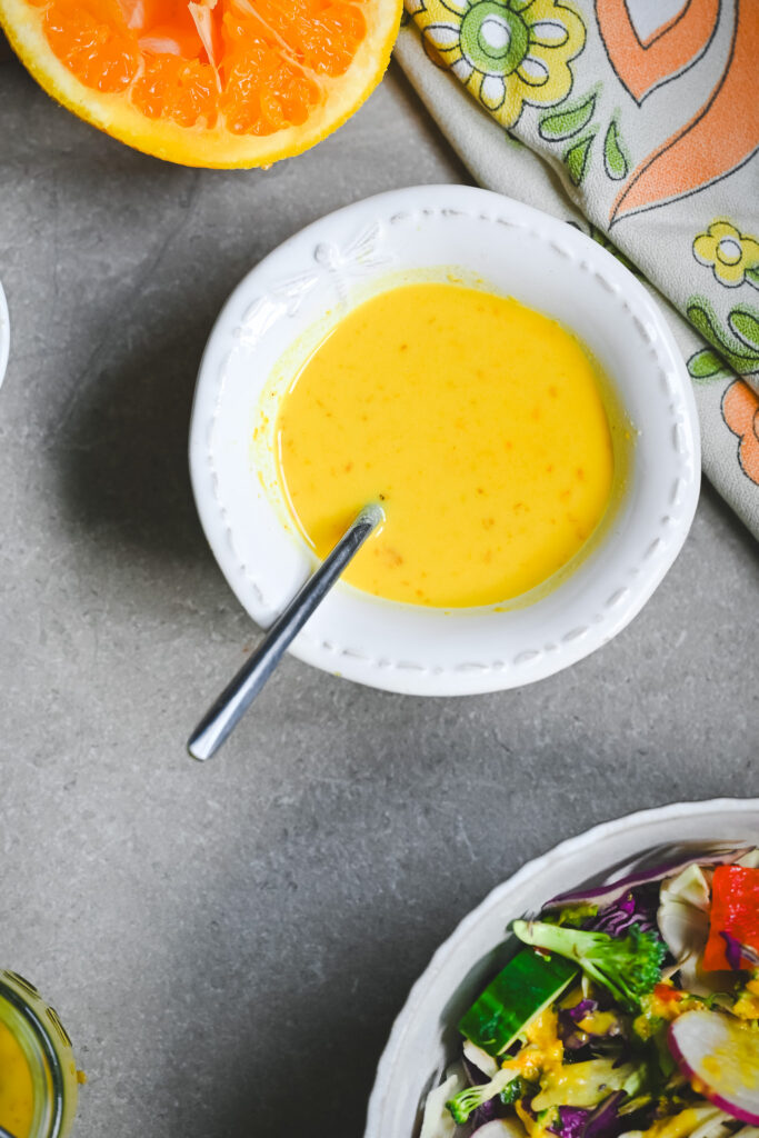 All I knew was that the protein was beef, dessert was covered, and I was on salad duty for eight — with two surprise guests added on the night. I had a few bits and pieces in the fridge that needed using, along with some opened packets of dry goods, so I was fairly confident I could pull something together. One lone grapefruit sat in my fruit bowl, and I instantly knew it would be the hero for the dressing.